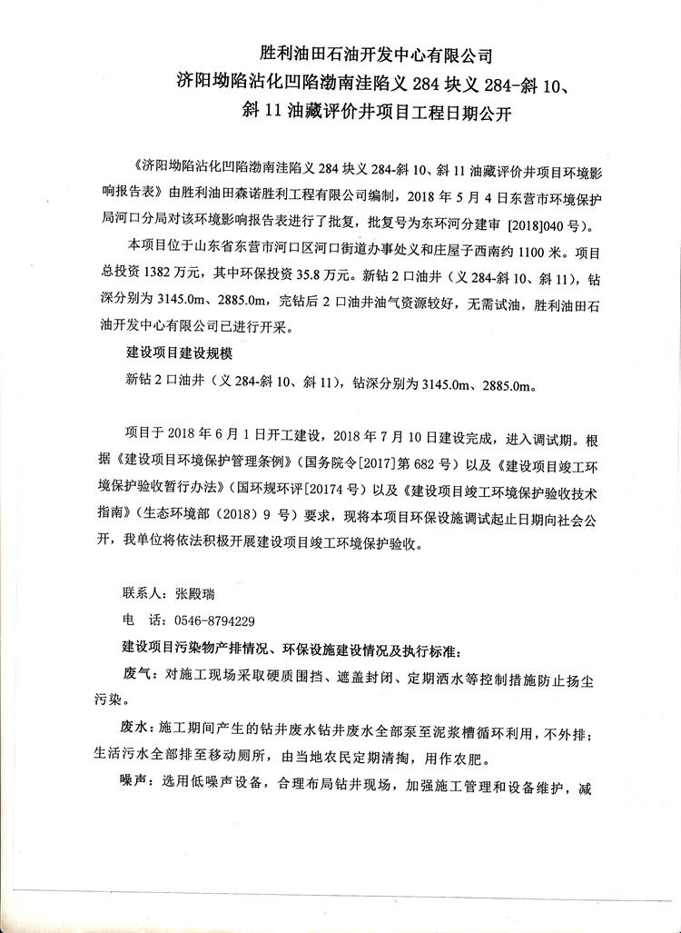 勝利油田石油開發(fā)中心有限公司濟陽坳陷沾化凹陷渤南洼陷義284塊義284-斜10、斜11油藏評價井項目工程日期公開
